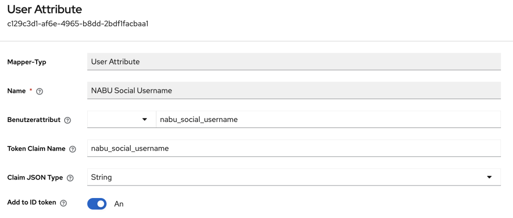 Das OIDC_UID_FIELD wird in unserer Config auf nabu_social_username gesetzt.
