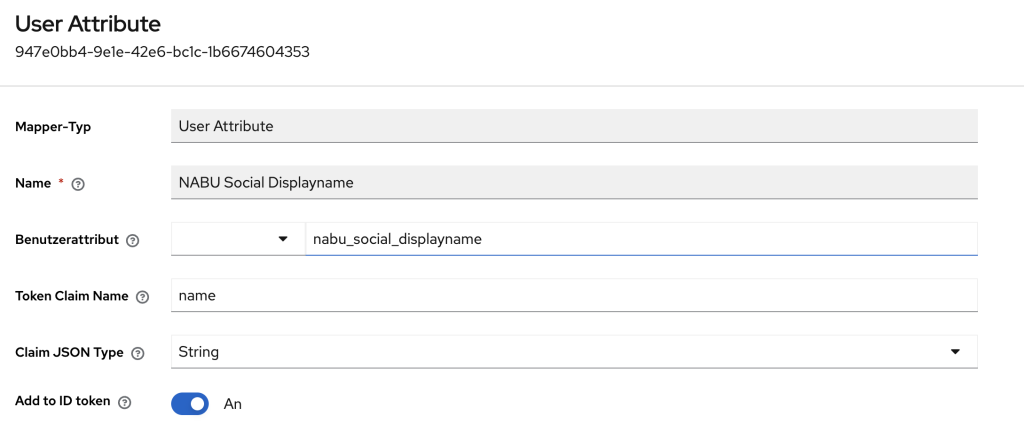 Allerdings ist hierfür noch ein Keycloak Mapper erforderlich, so dass dieses Attr. auch im ID Token von OIDC landet.
